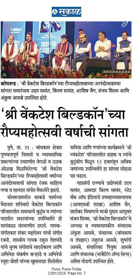 Venkatesh Buildcon Ropyamohostav Sohala 10th Jan 2026 news covered in Sakal Newspaper