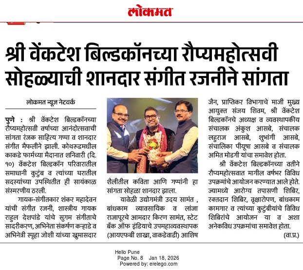 Venkatesh Buildcon Ropyamohostav Sohala 10th Jan 2026 news covered in LOKMAT Newspaper